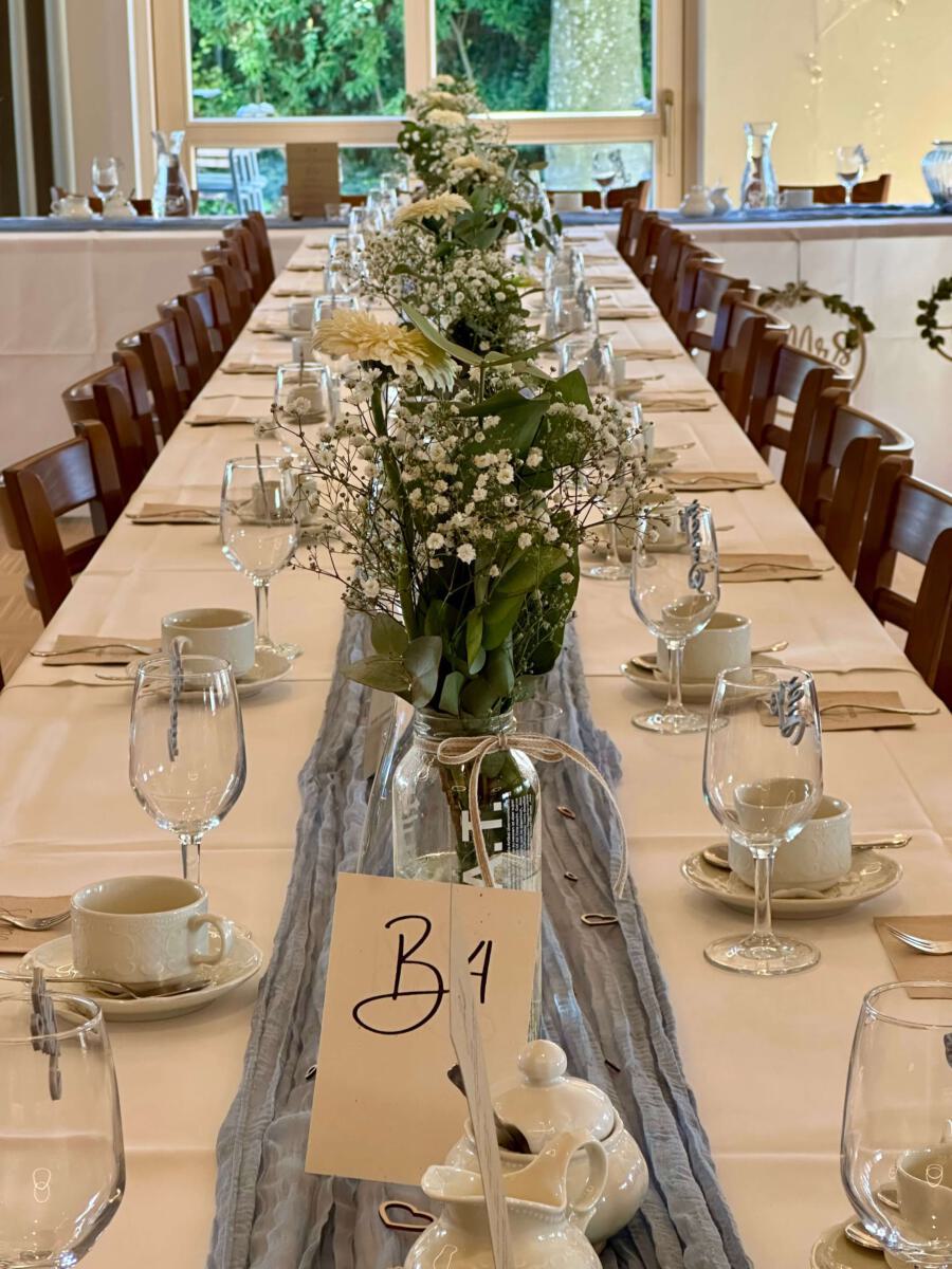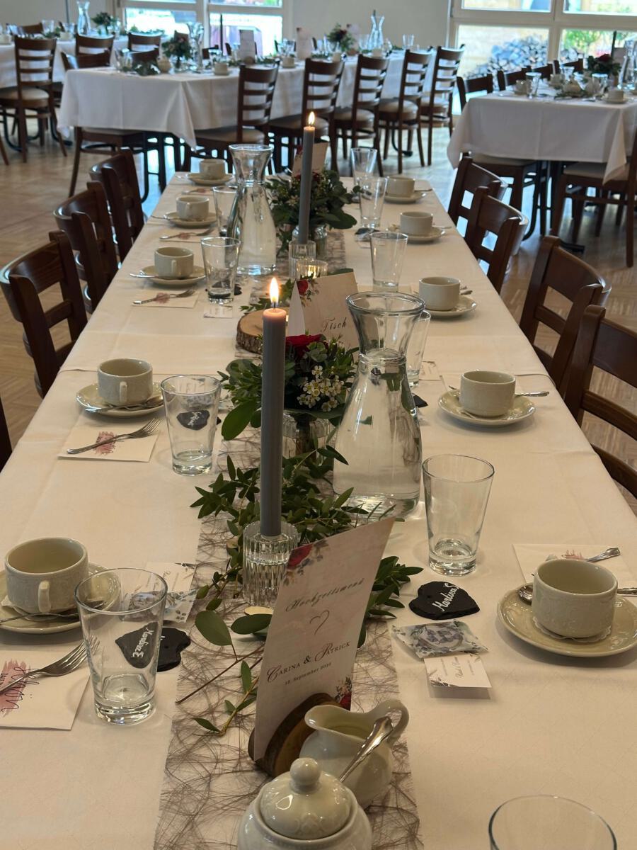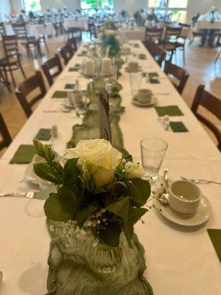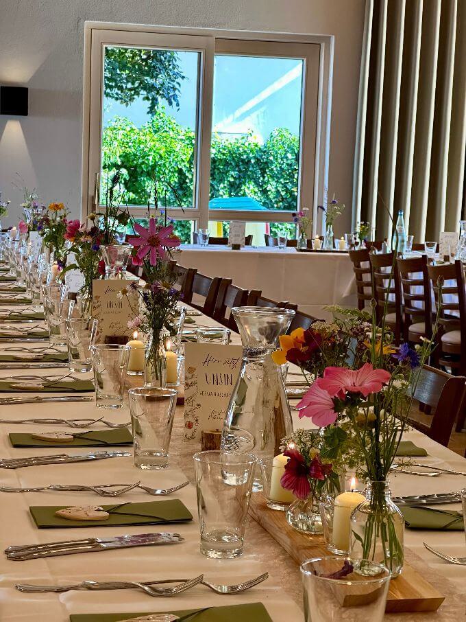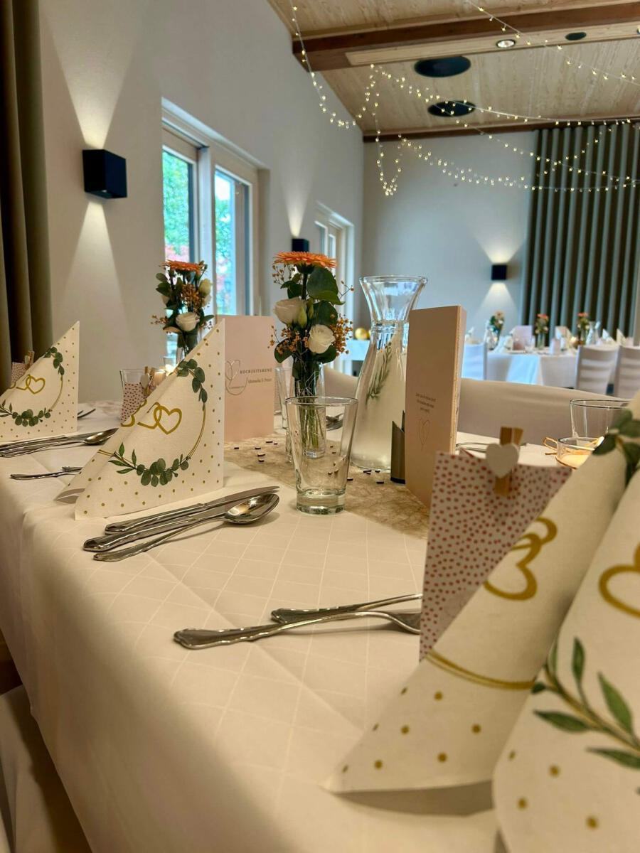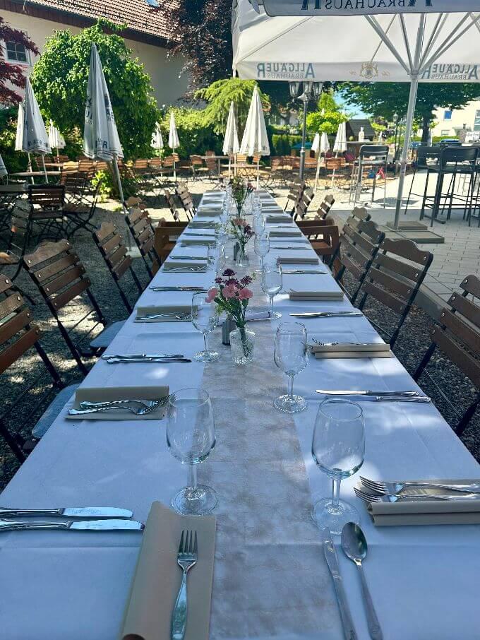 Bei gutem Wetter decken wir für Sie und Ihre Gäste zur lockeren Gartenfeier gerne in unserem Außenbereich auf. Hierfür berechnen wir einen Aufpreis von 300 €.