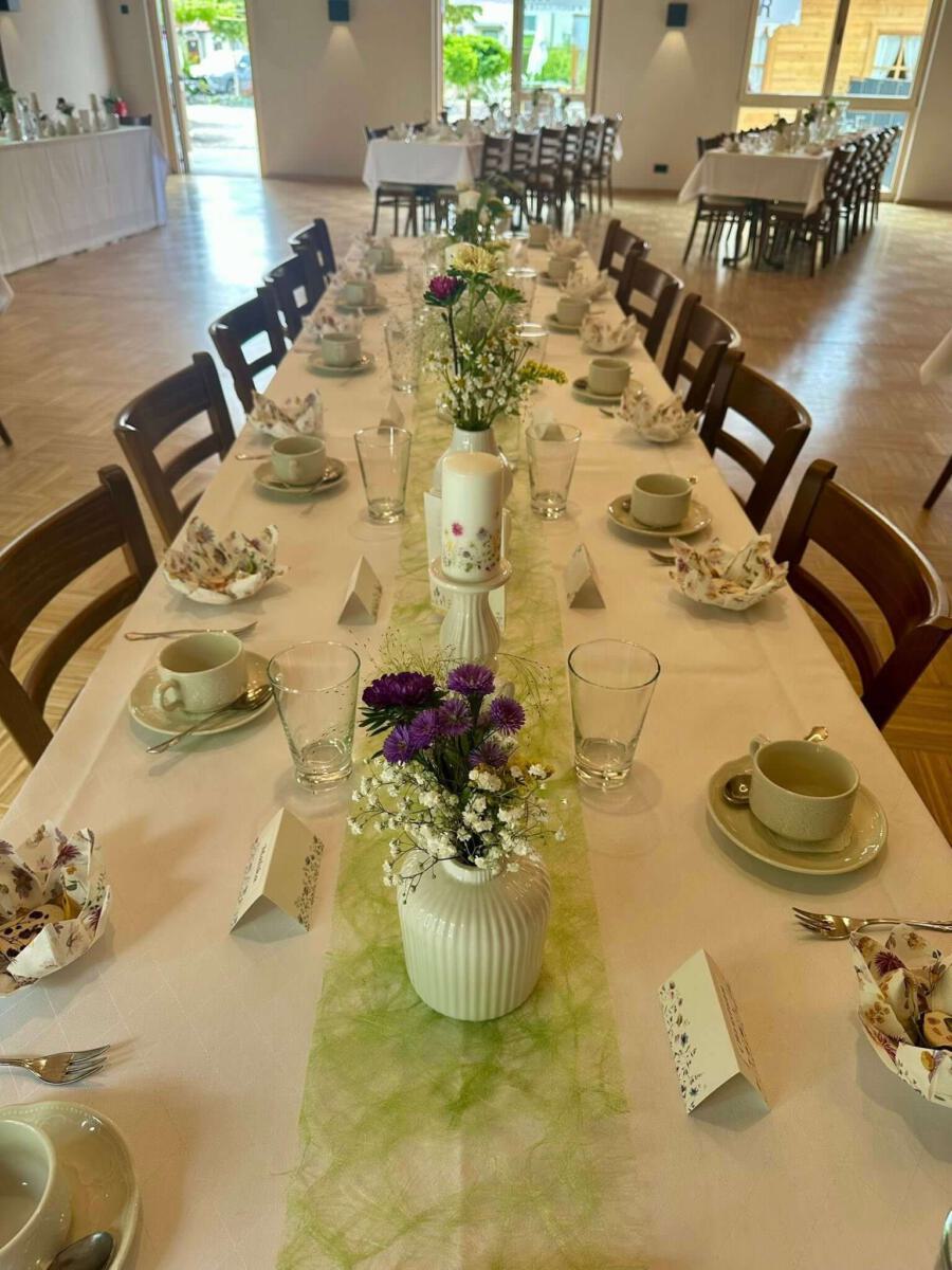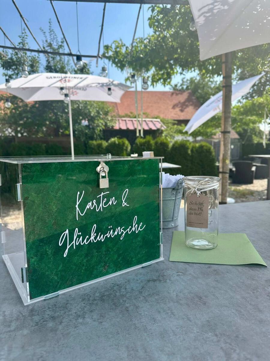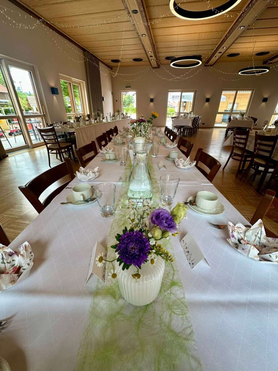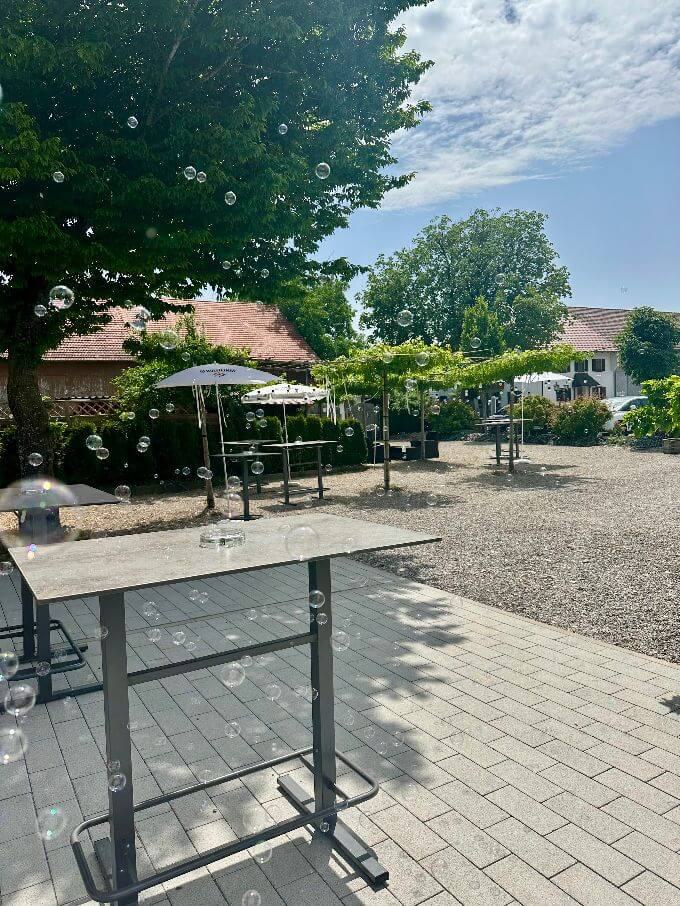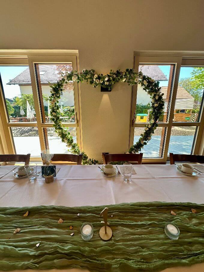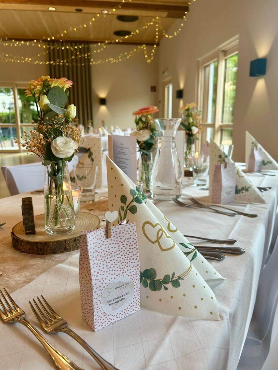 Bei gutem Wetter decken wir für Sie und Ihre Gäste zur lockeren Gartenfeier gerne in unserem Außenbereich auf. Hierfür berechnen wir einen Aufpreis von 300 €.