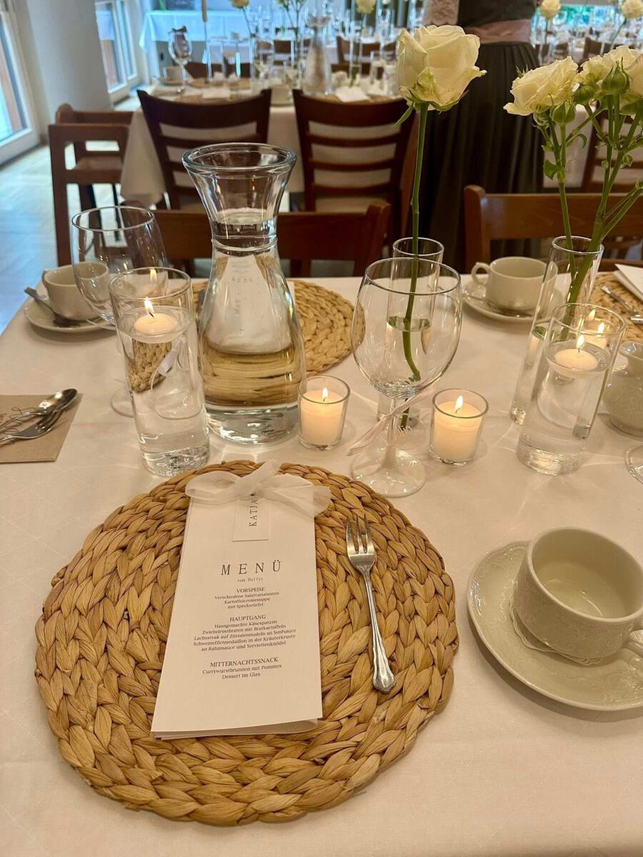 Gerne gestalten wir gemeinsam mit Ihnen Ihr unvergessliches Fest vom Empfang über das Essen und Brautverziehen bis hin zum Dessert.