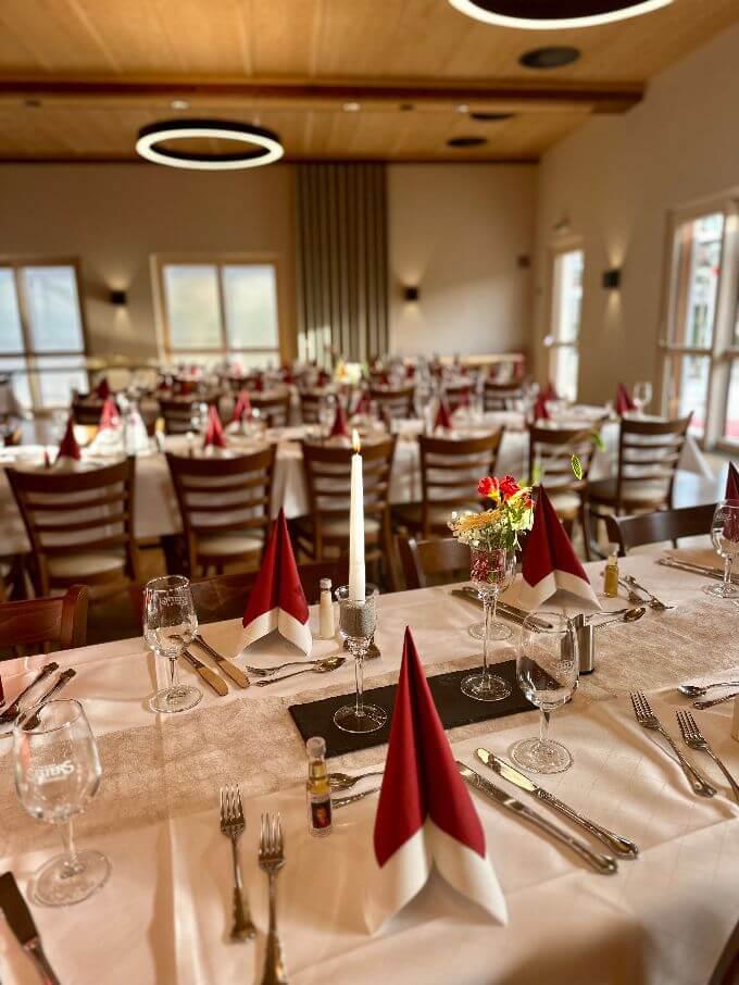 Unser Wintergarten mit großen Glasschiebetüren zum Biergarten lädt zum Feiern in gemütlicher Runde mit bis 45 Gäste ein.