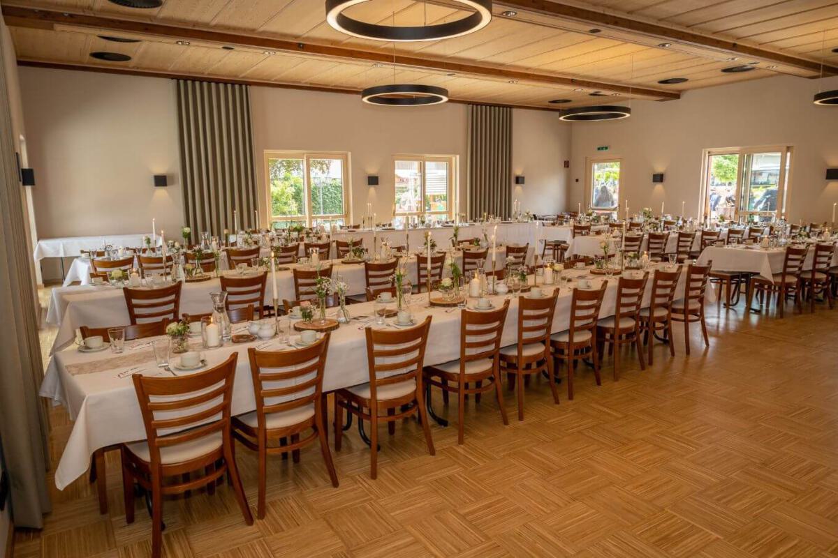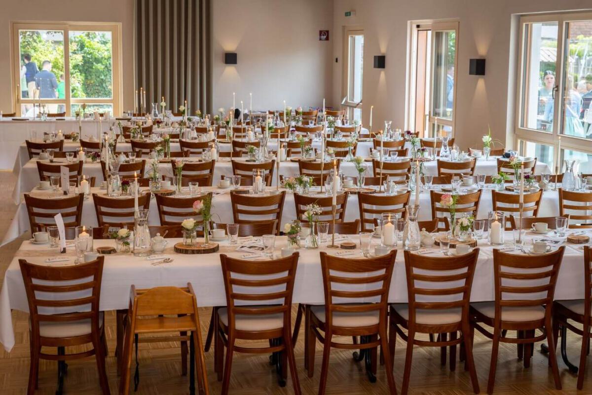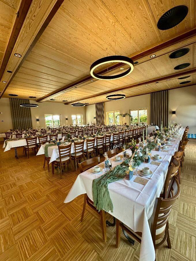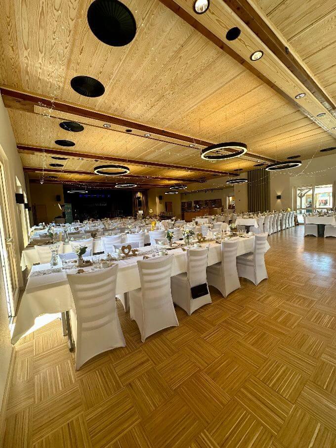 In unserem flexiblen Festsaal finden wir gemeinsam die optimale Bestuhlung für die Anzahl Ihrer Gäste.